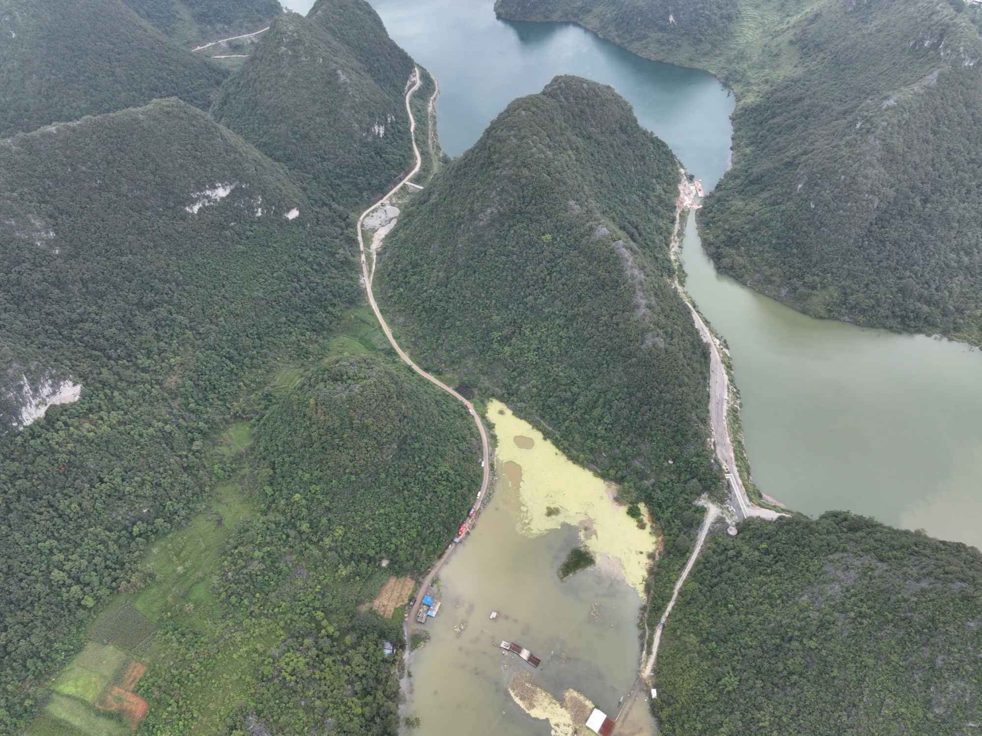 航拍德保县那甲镇多目屯,喀斯特地貌间的内涝区域(央广网发 百色市融媒体中心供图)