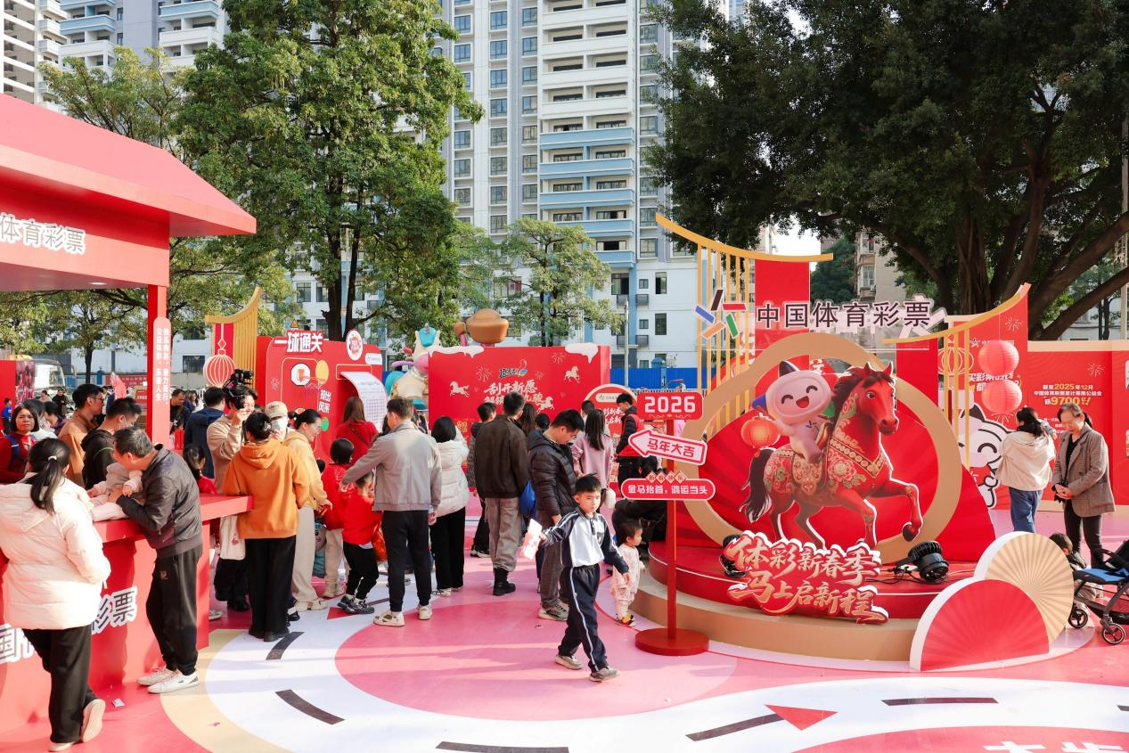 现场国风氛围浓厚,马年主题元素贯穿全程,特色布景吸引众多市民驻足留影。体彩公益展示区通过生动易懂的形式,透明呈现公益金流向与贡献,直观传递国家公益彩票的公益属性,深化了市民的认知与信任。