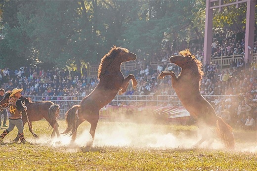 11月29日,融水苗族自治县举行“冬游融水”第23届芦笙斗马节“马王”争霸赛,60多匹勇驹同场争夺“马王”桂冠,吸引众多游人观看。(龙涛 摄)