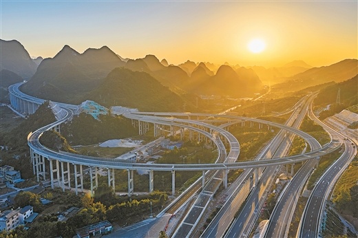 11月29日,平乐至昭平高速公路平乐东枢纽互通正加紧进行收尾作业。目前该公路各项主体工程已经全部完成,预计今年底前通车。(黄胜林 摄)
