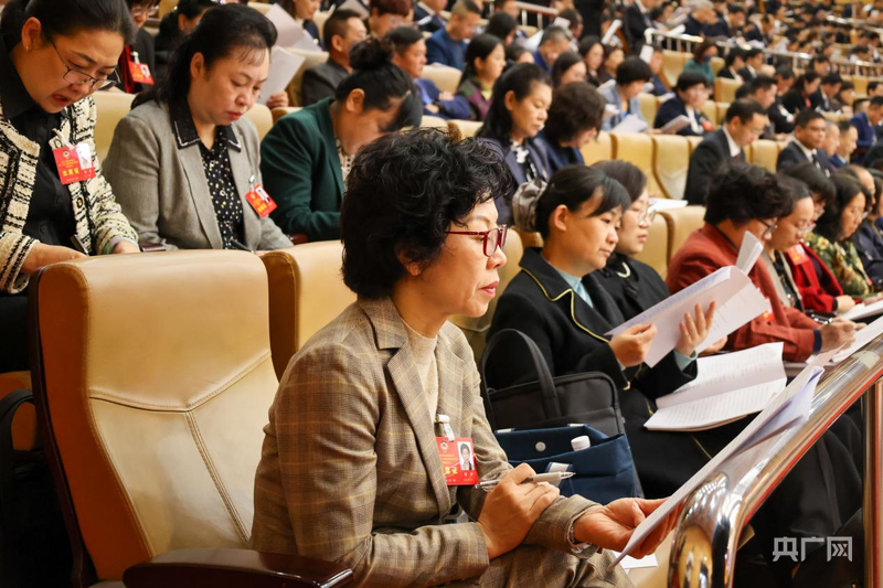 代表聆听工作报告(央广网记者 梁瑜琳 摄)