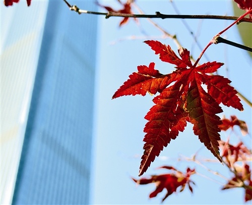 南宁的冬天里藏着一抹火红的颜色!大街小巷的枫树进入最佳观赏期,远远望去,摇曳的枫叶鲜红似火,极具视觉冲击力。每一片枫叶都称得上是大自然创作的艺术品,饱含思念之情。枫树为常见灌木,广泛用于园林绿化和城市美化。枫叶里含有一种特殊的物质——花青素,随着天气转凉,花青素含量逐渐增多,从而使枫叶变成了红色。图为东盟盛天地商业街区一带,高楼大厦间的枫叶红了。(记者潘浩 文/图)